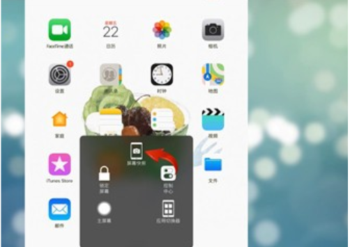 2.返回需要截屏的界面,點擊小白點,點擊【屏幕快照】按鈕,進行截屏。