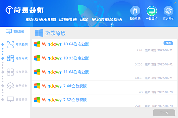 1、下載簡單裝機助手并運行,點擊開始重裝。