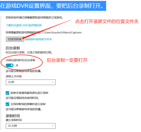 4、可以在游戲DVR設置界面,要把后臺錄制打開。