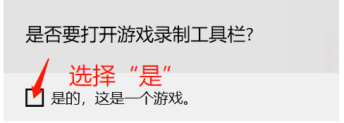 5、點擊 【Win+G】,出現提示框【是否要打開游戲錄制工具欄?】勾選【是的,這是一個游戲】。