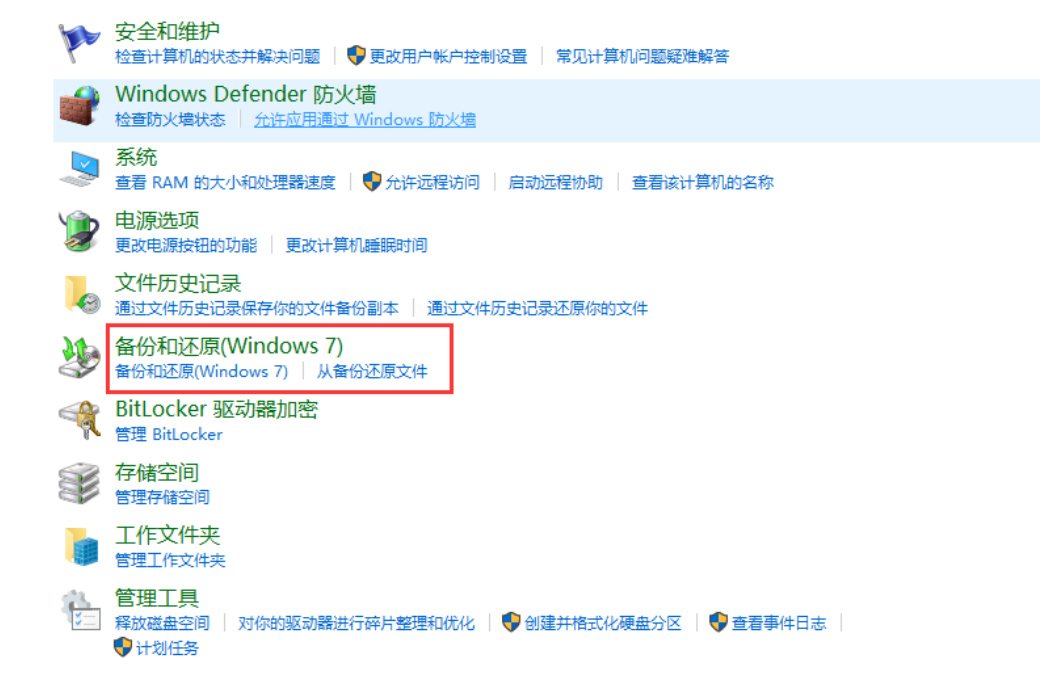 2.找到“系統與安全”,單擊“從備份還原文件”。