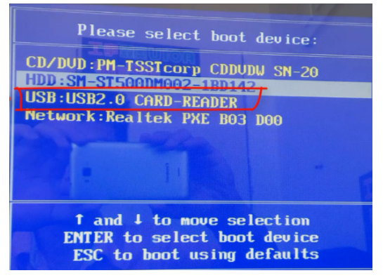 3、將u盤插入要裝系統的電腦,按啟動快捷鍵進入pe系統。