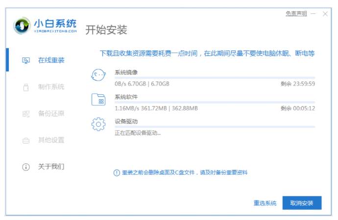 2、等待軟件開始自動下載windows系統鏡像文件資料等。