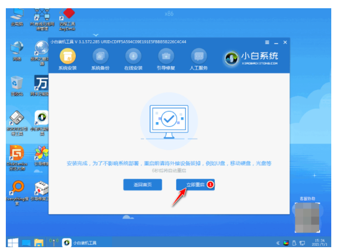 4、等待小白系統自動完成安裝系統后,重啟電腦即可。