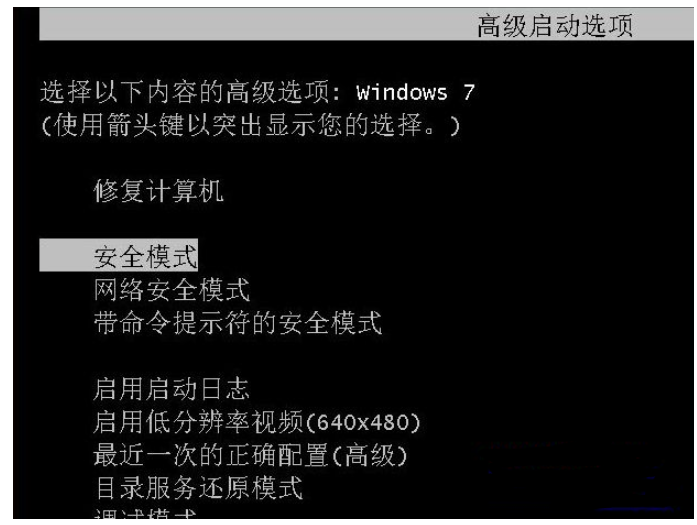 1、如果電腦是進入到系統不久后出現藍屏,則重啟電腦,在啟動過程中,按下F8鍵,打開高級啟動選項,使用鍵盤上下鍵回車進入安全模式。