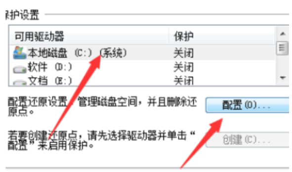 5、為了給電腦配置一個還原點,先選擇需要還原的磁盤,然后點擊配置。