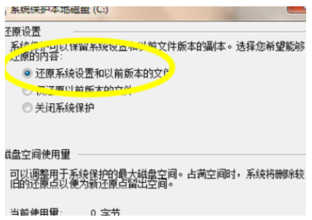6、然后選擇第一項還原系統設置以及以前版本的文件。