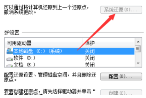 7、配置好后,在系統保護的屬性中找到系統還原,點擊系統還原即可還原到我們配置的還原點。