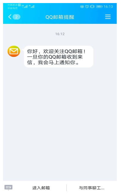 2、選擇公眾號后,找到“QQ郵箱提醒”,點擊下方的“進入郵箱”。