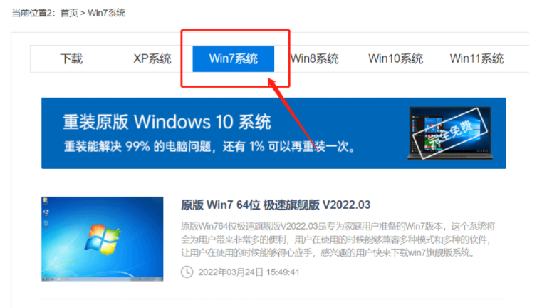 2、在頁面菜單欄中選擇想要的系統并進入,以win7系統為例。