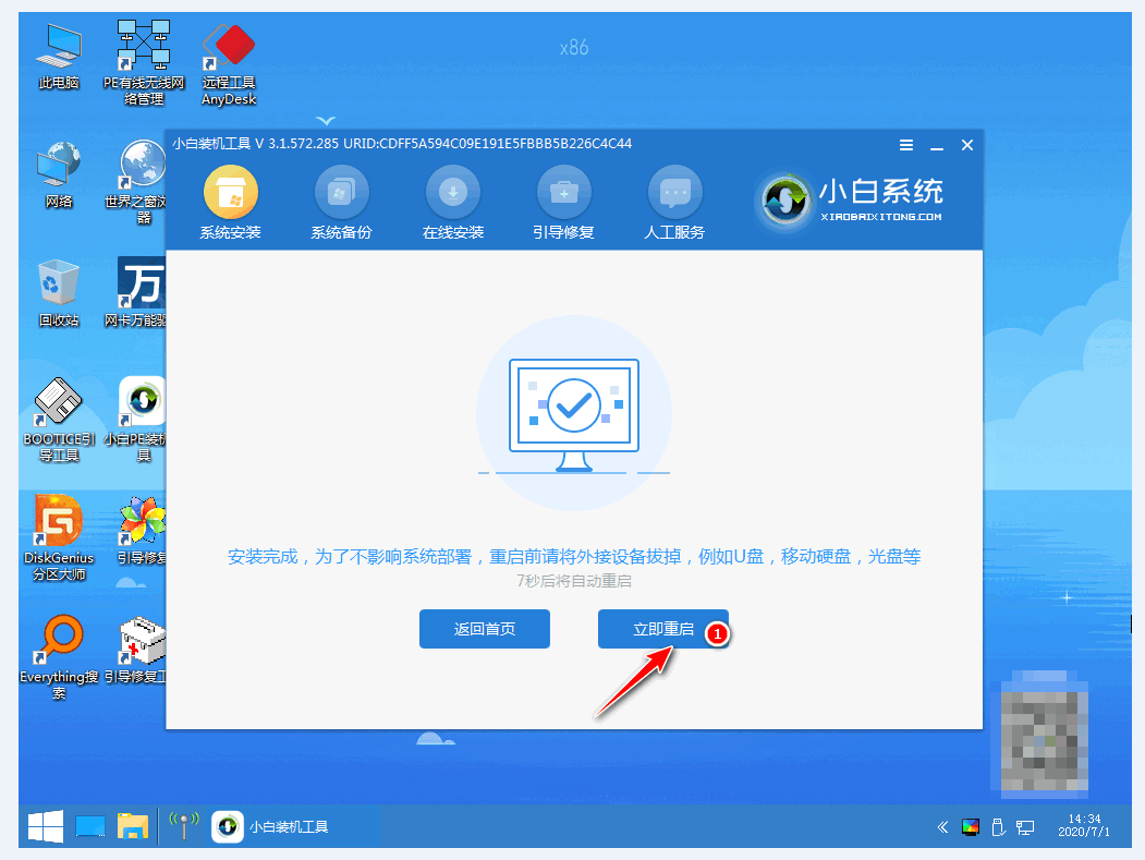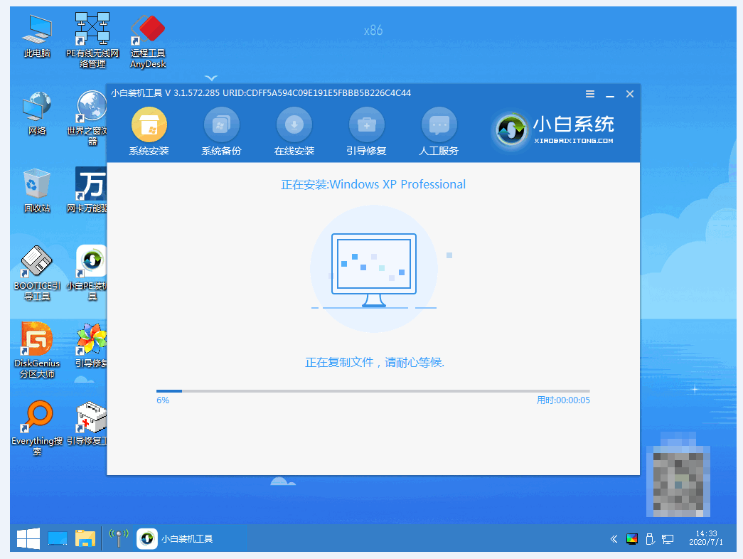 6、重啟后進入PE系統后,工具會自動繼續系統的安裝,繼續等待。