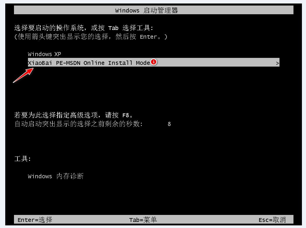 5、進入到啟動管理器頁面中,選擇第二項進入PE系統。