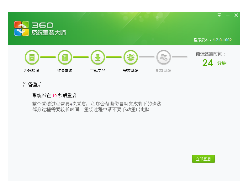 6、單擊立即重啟后,耐心等待系統安裝完成。