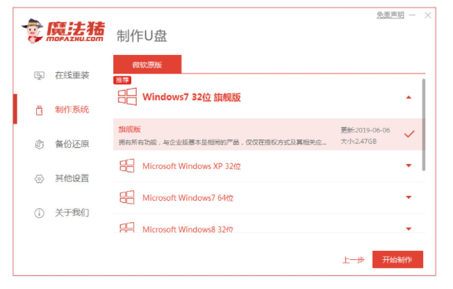 2、單擊開始制作。選擇我們要下載的系統鏡像。