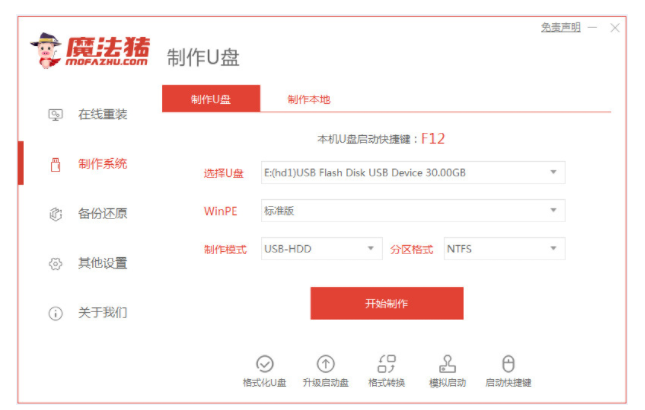 軟件版本:魔法豬系統重裝大師+8g的U盤
