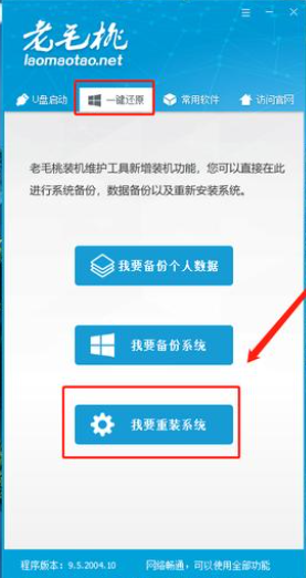 2、將選項卡切換至【一鍵還原】,點擊【我要重裝系統】。