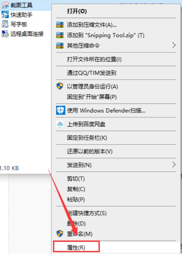 3、找到截圖工具以后,右鍵截圖工具,選擇【屬性】。