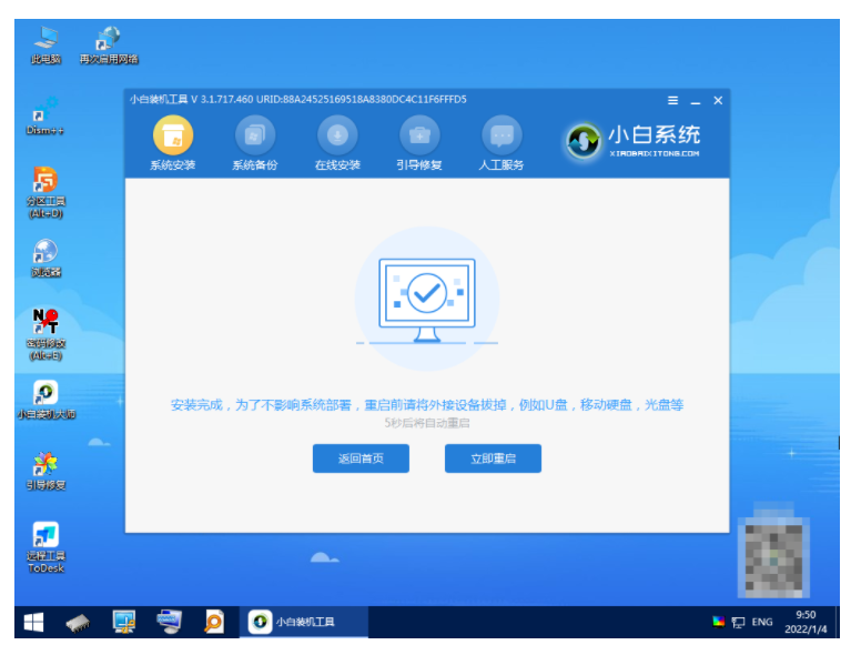 5、打開裝機工具,等待自動繼續重裝系統,完成后再次重啟。