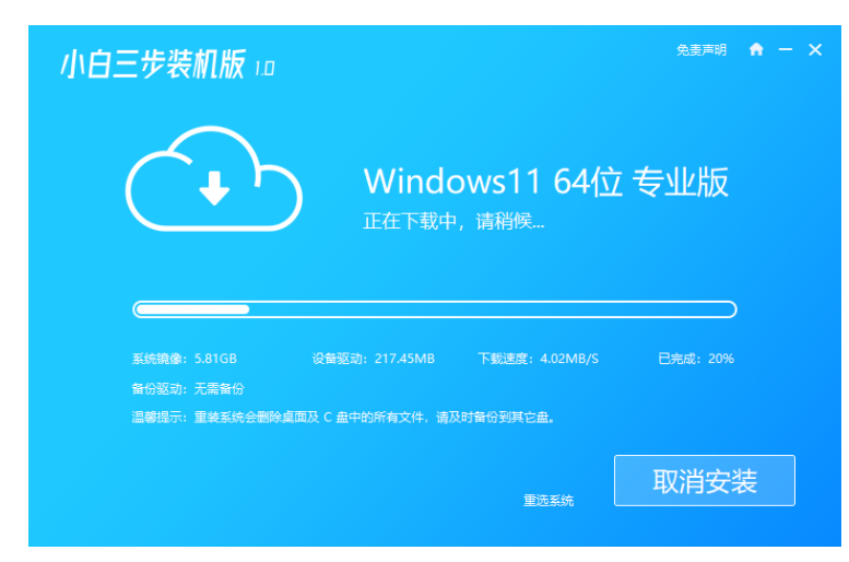 1、下載并運行小白三步裝機版軟件,選擇需要重裝的系統進行下載安裝。