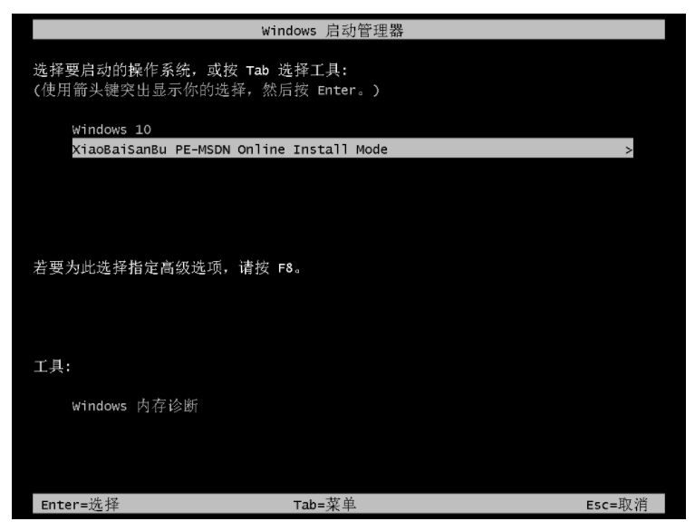 4、重啟后選擇XiaoBai PE-MSDN按回車。