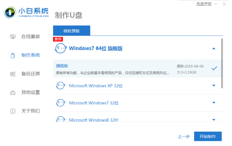 步驟二:我們選擇需要安裝的win7系統,選擇開始生產。
