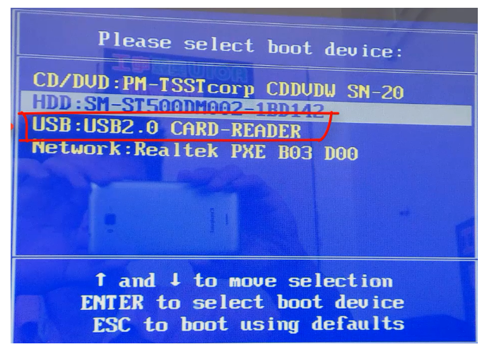 步驟四:u盤啟動盤插入需要重新安裝的電腦,選擇重新啟動計算機,并且快速斷續地按下啟動快捷鍵進入快速啟動界面,然后選擇帶USB開頭的u盤啟動項返回鍵進入即可。