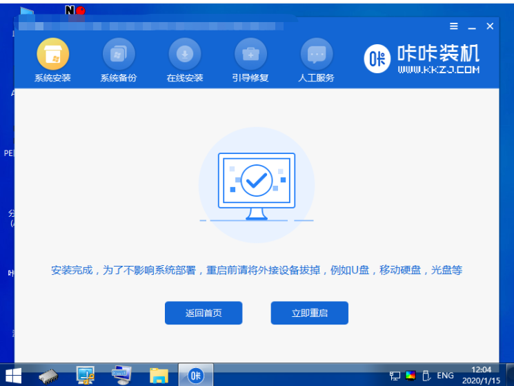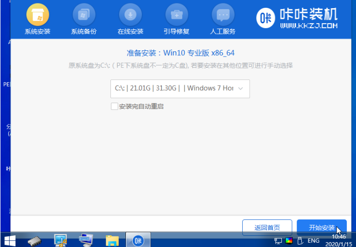 步驟五:然后在PE系統桌面上打開咔咔裝機工具,選擇系統點擊安裝即可。