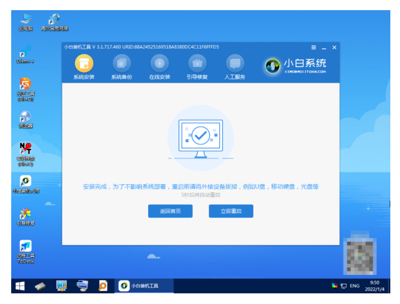 5、等待自動繼續重裝系統,完成后再次重啟電腦。