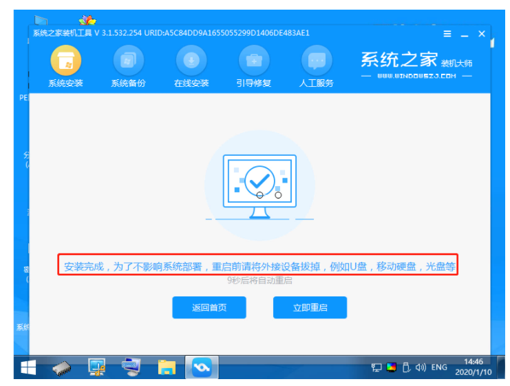8、系統安裝完成后,再次重啟。