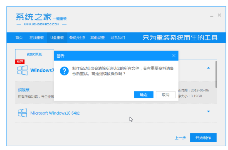 3、選擇要重裝的系統后,確定U盤中無重要數據后,點擊確定。