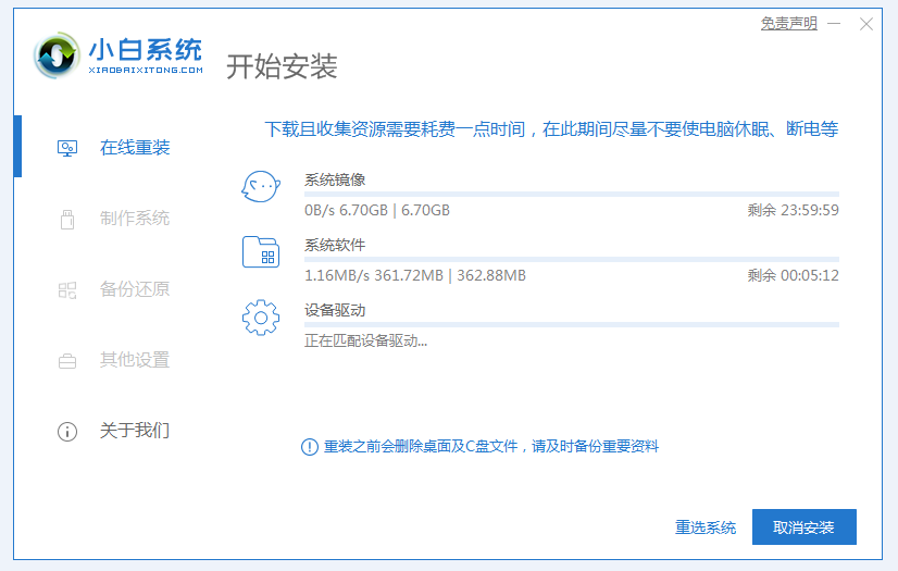 5、進入pe系統后,小白軟件會開始全自動安裝系統,耐心等待即可。