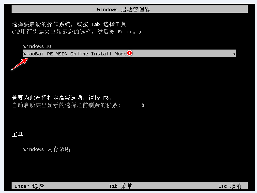 4、重啟后進入啟動管理器頁面中,選擇第二項,回車進入pe系統。