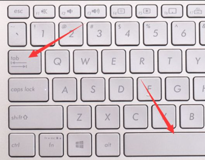2、按鍵盤上的tab鍵,也可以按空格鍵。