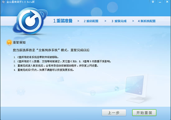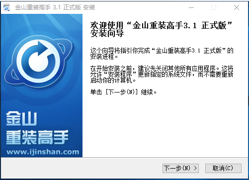 2、金山重裝系統大師裝系統不需要光盤或者U盤等系統盤來安裝,只需要下載一個金山系統重裝軟件即可。