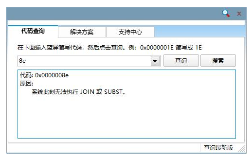 1.藍屏代碼0x0000008e表示“系統此時無法執行JOIN或SUBST”。