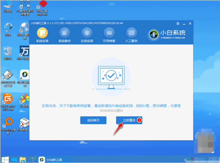 步驟六:系統安裝完成,單擊立即重啟即可。