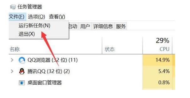 2、點擊“文件”選項,點擊“運行新任務”。