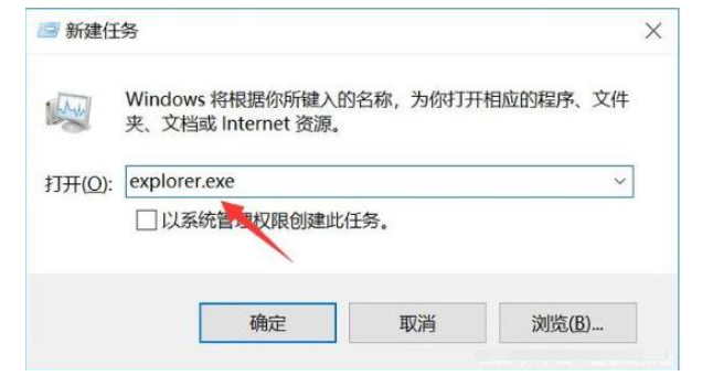 3、運行窗口中,輸入“explorer.exe”按回車確定即可。