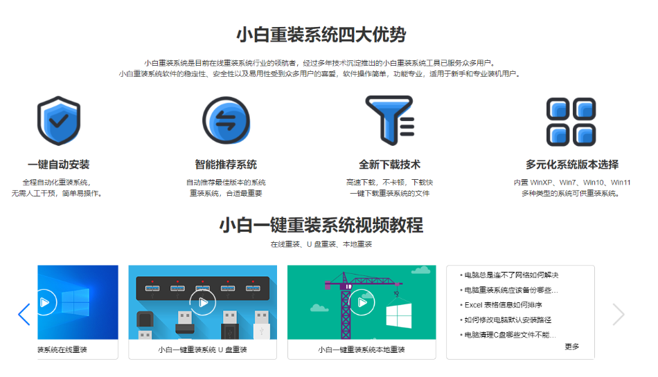 (二)小白一鍵重裝系統軟件優勢