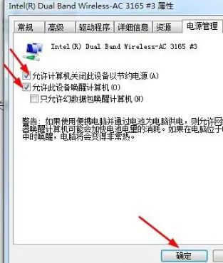 4、勾選允許計算機關閉此設備以節約電源和允許此設備喚醒計算機點擊確認就可以了。