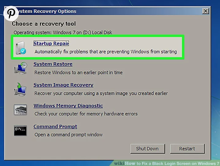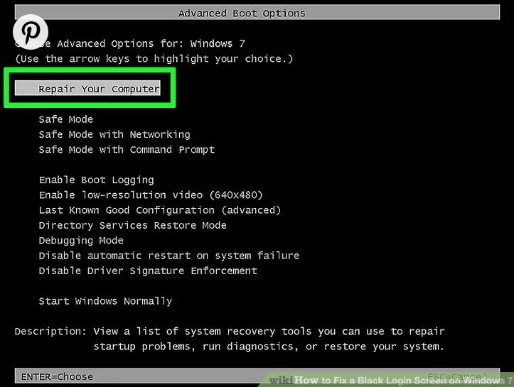 4、選擇您要登錄的用戶,以管理員身份登錄將使您能夠訪問命令提示符以及其他修復選項。