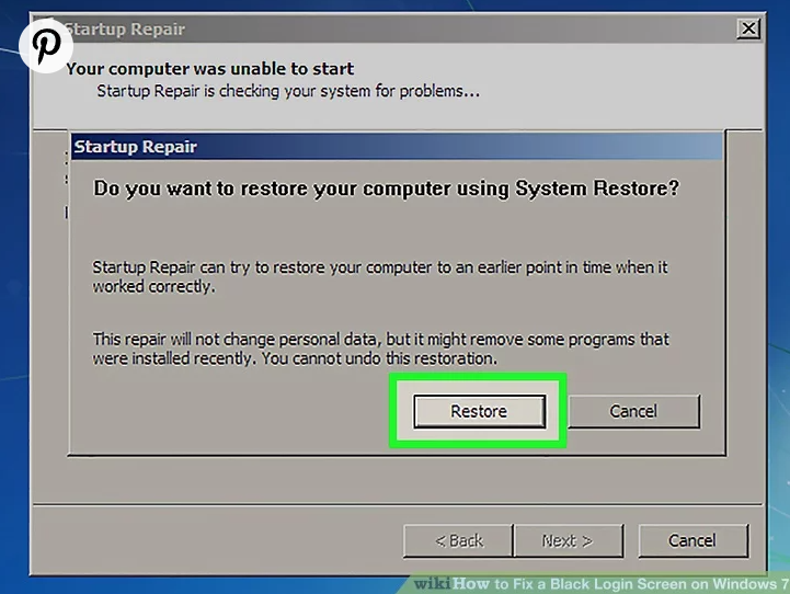 7、按照任何提示修復問題。根據啟動修復遇到的錯誤,您可能會獲得不同的選項。在許多情況下,啟動修復無需您的干預即可修復問題,并且您的計算機將重新啟動一次或多次。如果啟動修復提示您執行系統還原,請點擊還原按鈕并選擇最近的還原點。