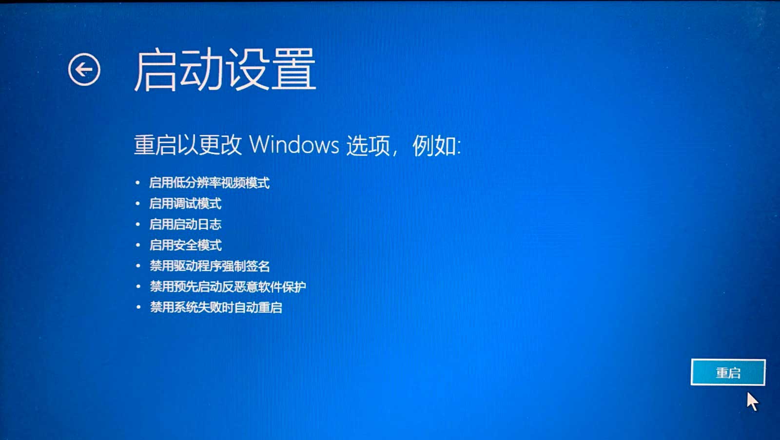 5、點擊重啟按鈕后,按【數字鍵4】或【功能鍵F4】來啟用安全模式。