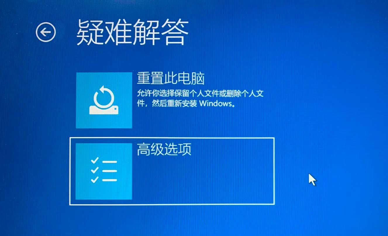 1、首先我們可以在開機時立即長按【F8】按鍵,在彈出的選擇一個選項界面點擊疑難解答。