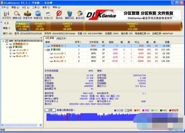 DiskGenius在數據恢復方面,有恢復文件和恢復分區兩種模式,其中,恢復文件又有刪除文件恢復和整個分區恢復兩種方式。實際測試中,該軟件的恢復 速度很快,恢復效果非常好,在某些方面,比數據恢復精靈還要好,只要文件沒有被覆蓋,就都能被掃描出來。