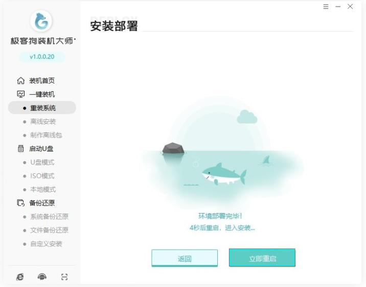 5、隨后等待軟件自動下載系統鏡像文件以及環境部署過程,部署完成后點擊“立即重啟”。