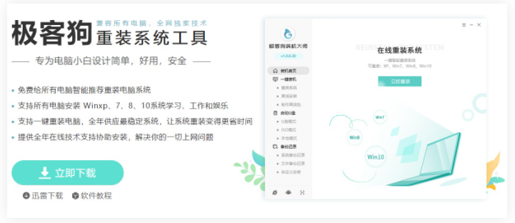 1、在官網上下載并安裝“極客狗裝機大師”軟件(原黑鯊)。