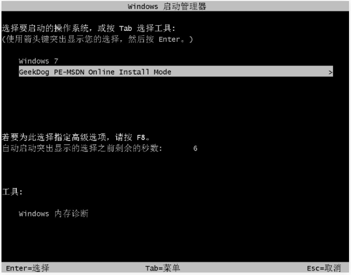 6、重啟后進入啟動頁面,選擇“GeeDog...”選項后進入PE系統。