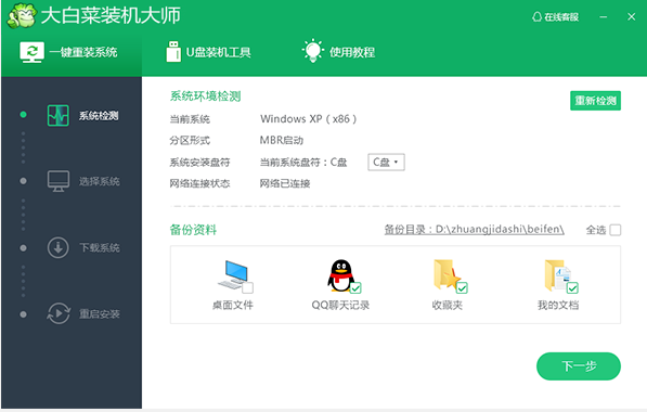 1、下載軟件后打開,點擊“一鍵重裝系統”,等待程序會檢測當前系統環境。