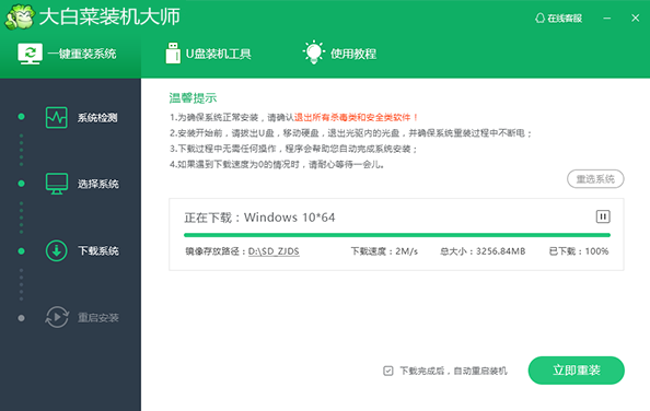 1、在該軟件一鍵重裝系統中下載通過環境監測推薦的最佳系統版本。